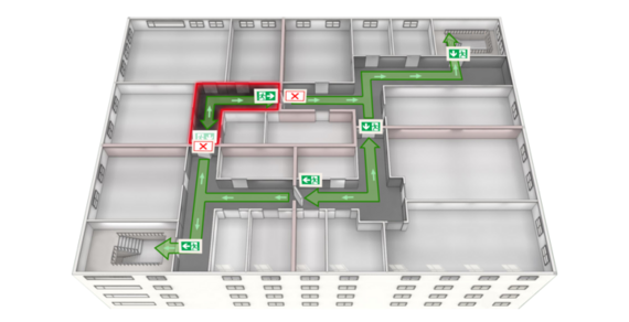 Una volta stabiliti questi parametri, il progettista definisce con precisione il posizionamento degli apparecchi. Le planimetrie dell’edificio diventano la base operativa su cui disegnare una distribuzione strategica, pensata per garantire continuità visiva, chiarezza e assenza di zone d’ombra. L’illuminazione deve essere presente nei punti di svolta, dove il percorso cambia direzione, e in prossimità delle uscite di sicurezza, che devono risultare immediatamente riconoscibili anche in condizioni di panico o scarsa visibilità. I segnali sicurezza indicanti le uscite ed i cambi di direzione devono essere ben visibili e adeguatamente illuminati (meglio se retroilluminati), così come tutte le attrezzature di emergenza, come estintori, idranti o pannelli antincendio, che richiedono una luce dedicata per essere facilmente individuabili. Anche gli ostacoli o i dislivelli lungo le vie di fuga devono essere illuminati per evitare cadute o situazioni di pericolo.