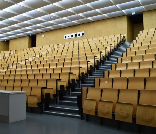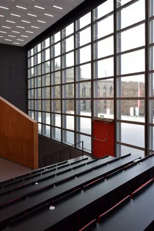 Dopo quasi 60 anni di utilizzo, l'edificio Audimax, classificato, non soddisfaceva più i requisiti attuali in termini di funzionalità, isolamento acustico e termico e sicurezza. Si è resa necessaria un'ampia ristrutturazione dell'edificio. Durante la fase di progettazione, tuttavia, come per altri edifici storici, è emerso chiaramente il conflitto tra le esigenze di protezione di questi edifici, da un lato, e la funzionalità e la sicurezza, dall'altro. Durante la ristrutturazione dell'Audimax, il tessuto storico dell'edificio doveva essere preservato il più possibile, mantenendo il concetto architettonico e tenendo conto dei requisiti di funzionalità e sicurezza di una moderna aula magna. Questo compito non poteva essere risolto con approcci standard, ma richiedeva soluzioni intelligenti per conciliare tutte le esigenze.