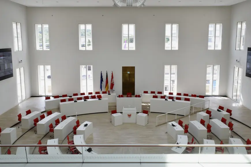 Proseguendo nella progettazione della tecnologia dell'edificio, è emerso che non sarebbe stato possibile evitare un sistema di batterie nel seminterrato, a causa di altri dispositivi tecnologici di sicurezza (ad esempio un USB). Alla fine il Landtag completo è stato inserito in una "vasca bianca" per la protezione dalle inondazioni.