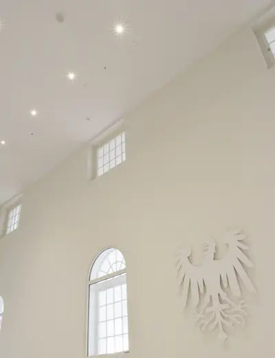 Dietro la facciata storica dell'edificio del parlamento del Brandeburgo, gli ambienti sono costruiti secondo gli standard odierni, utilizzando tecnologie edilizie all'avanguardia, e non solo nel caso dell'illuminazione di sicurezza e di emergenza. L'obiettivo di ridurre la capacità delle batterie nel seminterrato è stato brillantemente raggiunto grazie al sistema decentralizzato offerto dal CLS 24 di INOTEC. Anche l'architettura pianificata dell'edificio, senza condotti verticali aggiuntivi, è stata mantenuta grazie al concetto di CLS.