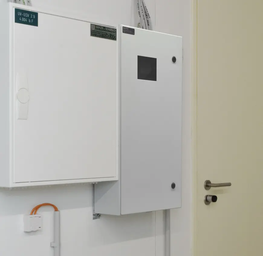 Come ulteriore misura di sicurezza, si è deciso di utilizzare il sistema di emergenza decentralizzato CLS 24 di INOTEC, anziché un sistema di batterie centrale. Il sistema decentrato ha il vantaggio di rendere superflua una grande installazione di batterie nel seminterrato. I singoli sistemi CLS sono alloggiati localmente in ogni compartimento antincendio e alimentano solo le uscite di emergenza e gli apparecchi di sicurezza all'interno di un singolo compartimento antincendio. È stata così eliminata anche la necessità di un esteso cablaggio E30 e di passaggi di cavi, nonché di un alloggiamento in un locale impianti separato.