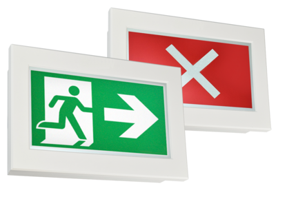 Gli apparecchi dinamici per le uscite di emergenza devono essere in grado di indicare direzioni di fuga alternative e di chiudere una via di fuga con una croce. È inoltre essenziale che gli apparecchi installati a parete o a soffitto indichino la stessa direzione di fuga delle indicazioni degli apparecchi installati a terra. Affinché il sistema funzioni, è necessario che nell'edificio sia installato un sistema di allarme antincendio. Questo trasmette i messaggi relativi a un evento nell'edificio al sistema di guida dinamica della fuga, dove vengono elaborati per controllare gli apparecchi dinamici. Per garantire l'affidabilità operativa del sistema di guida anche in caso di interruzione dell'alimentazione, per motivi di sicurezza deve essere collegato a un'alimentazione elettrica ad attivazione automatica. Può trattarsi di un sistema di alimentazione centrale o di un sistema di sostituzione della rete con un tempo di funzionamento nominale di almeno 60 minuti.