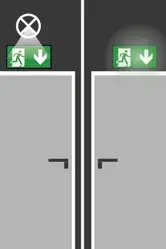 - Gli apparecchi per la segnaletica di emergenza indicano il percorso per raggiungere l'uscita più vicina.